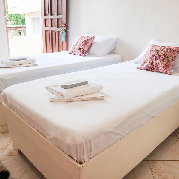 Discover comfort and flexibility in our Twin Rooms, featuring two cozy single-sized beds. Need space for a third guest? No problem! For an additional 400 pesos, we offer the option to add an extra cot, ensuring everyone enjoys a restful night's sleep. Whether traveling with friends or family, our Twin Rooms provide the perfect blend of comfort and convenience for your stay.